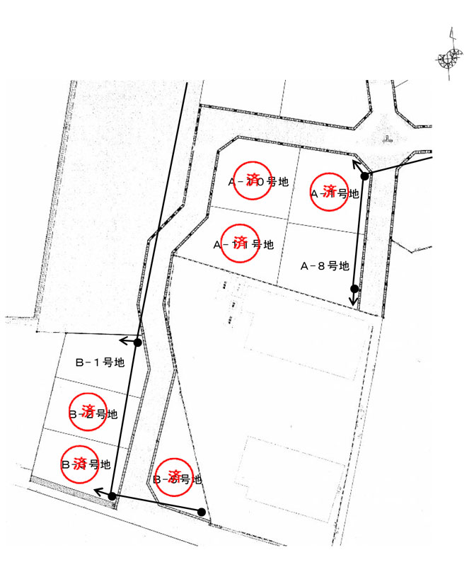 A‐10号地、A‐11号地の電気の引込みは、引込ポール使用か引込線取付点を建物に設置してください